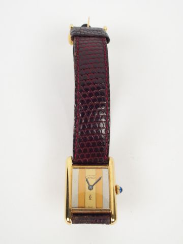 CARTIER. Montre must de femme en argent et plaqué or. Numérotée: 3 177221. Bracelet rapporté.