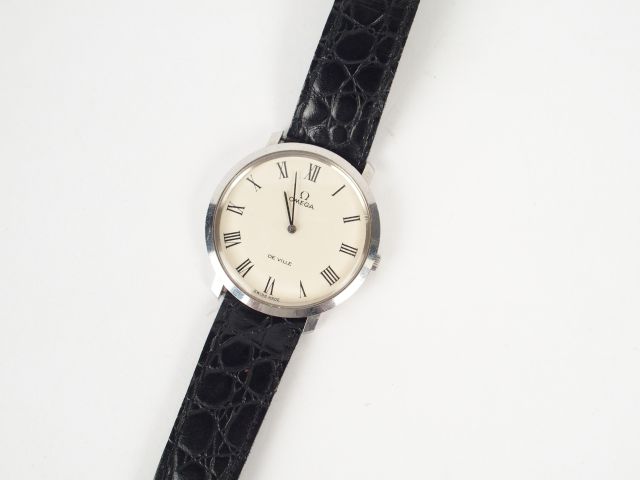 OMEGA. Montre De Ville mécanique, boitier rond acier. Bracelet croco rapporté.