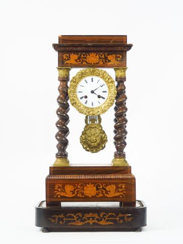 Lot de Pendule portique Napoléon III en marqueterie Boulle. H. 47,5 cm au prix de 100 à 150 € en vente aux enchères par l'hôtel des ventes Primardeco