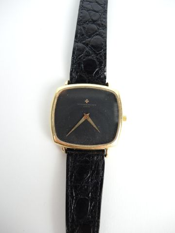 VACHERON CONSTANTIN - Genève. Montre d'homme, boitier rectangulaire en or jaune, bracelet crocodile noir, numérotée 500542