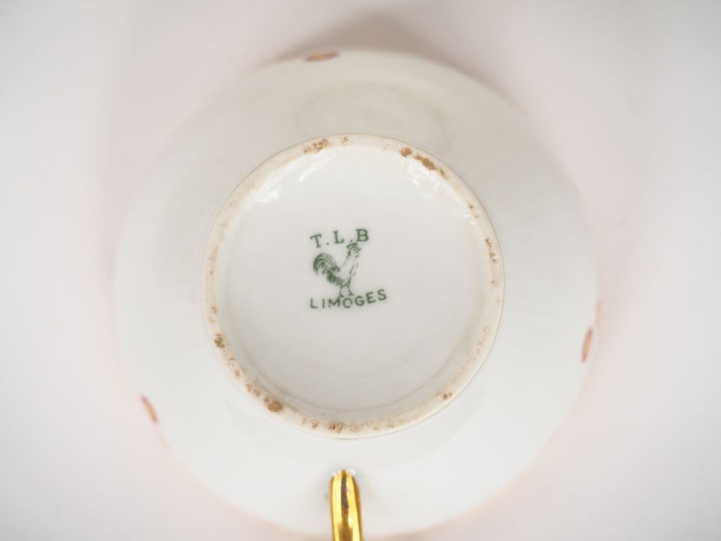 12 tasses et 12 sous tasses à thé de style Art Déco en porcelaine de Limoges , on y joint un pot à lait