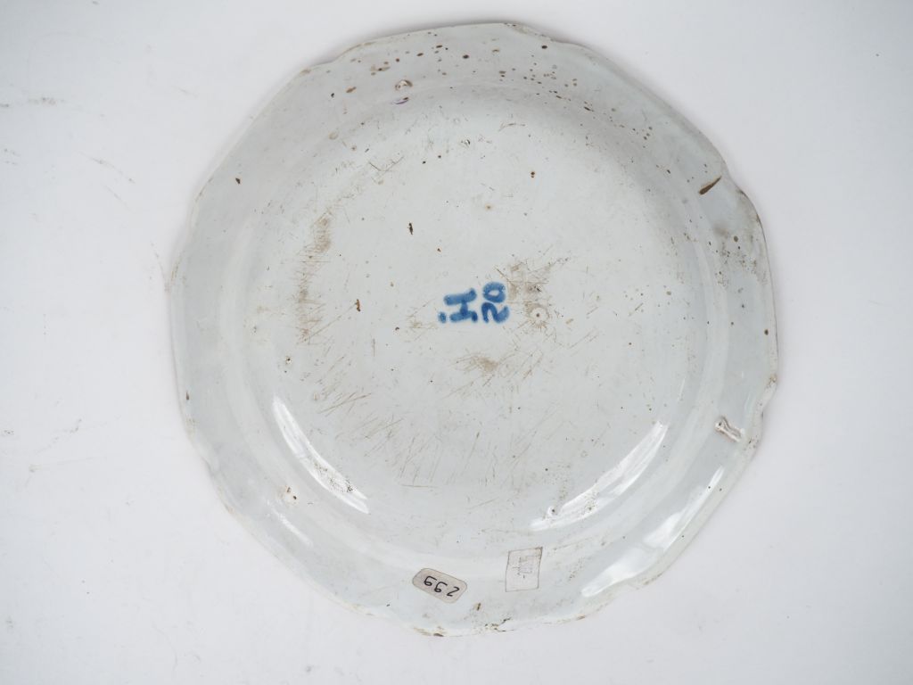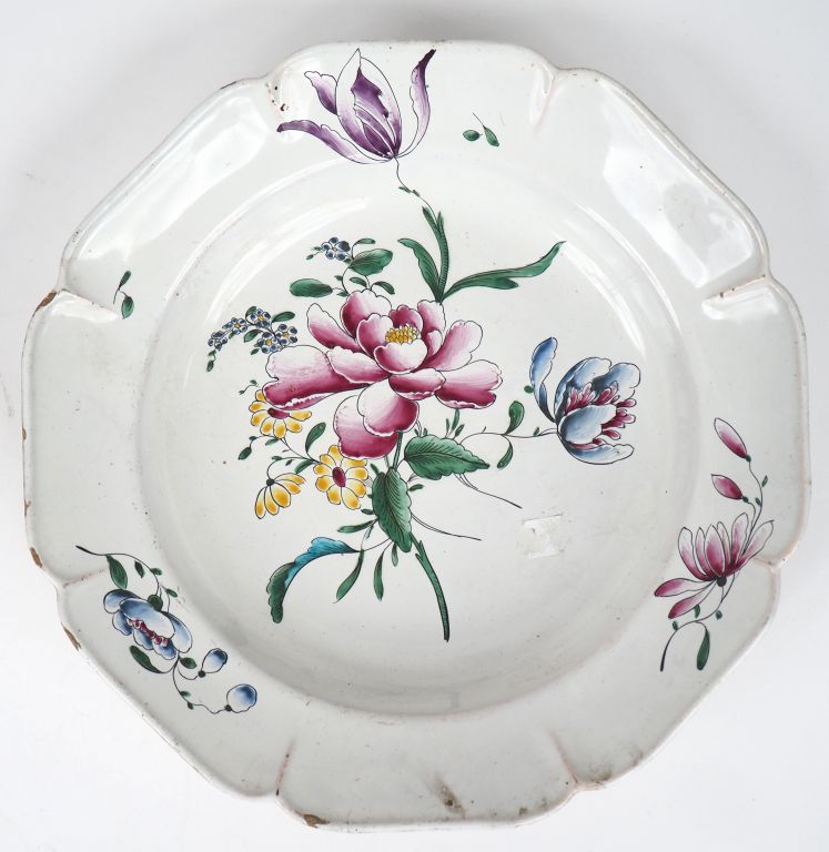 Assiette creuse XVIIIème en faience de Strasbourg, décor de fleurs polychromes signée Jean Hannong.