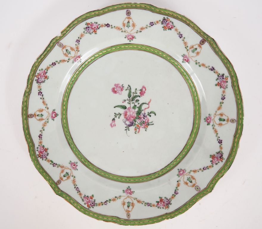 Assiette en porcelaine de style Louis XVI. Chine début XIXème. Travail de la Compagnie des Indes (petite égrenure)