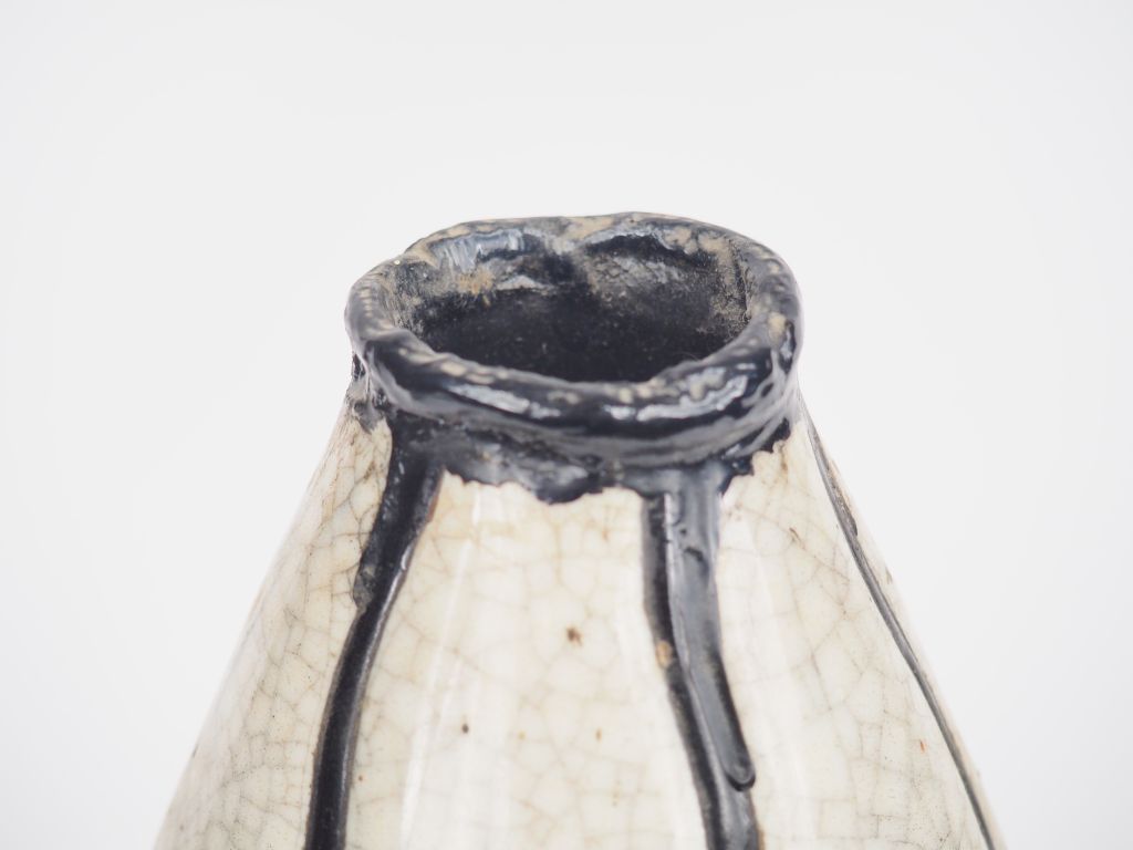 BOCH LA LOUVIERE. Vase ovoïde Art Déco en faïence craquelée à décor de motifs géométriques bruns et de liserés dorés. H. 28 cm.
