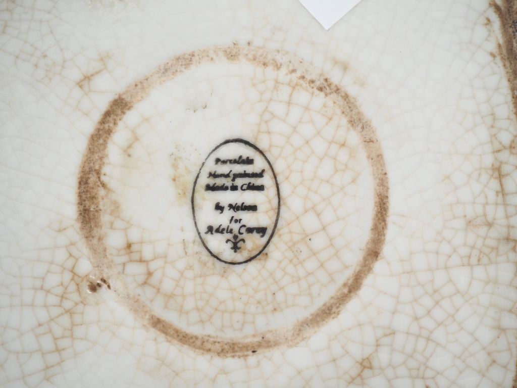 Boîte couverte de style Extreme Orient en porcelaine polychrome et rehaussé d'or sur fond brun d'objets mobiliers. Signée au revers. Dim. 9 x 19,5 x 13,5 cm.