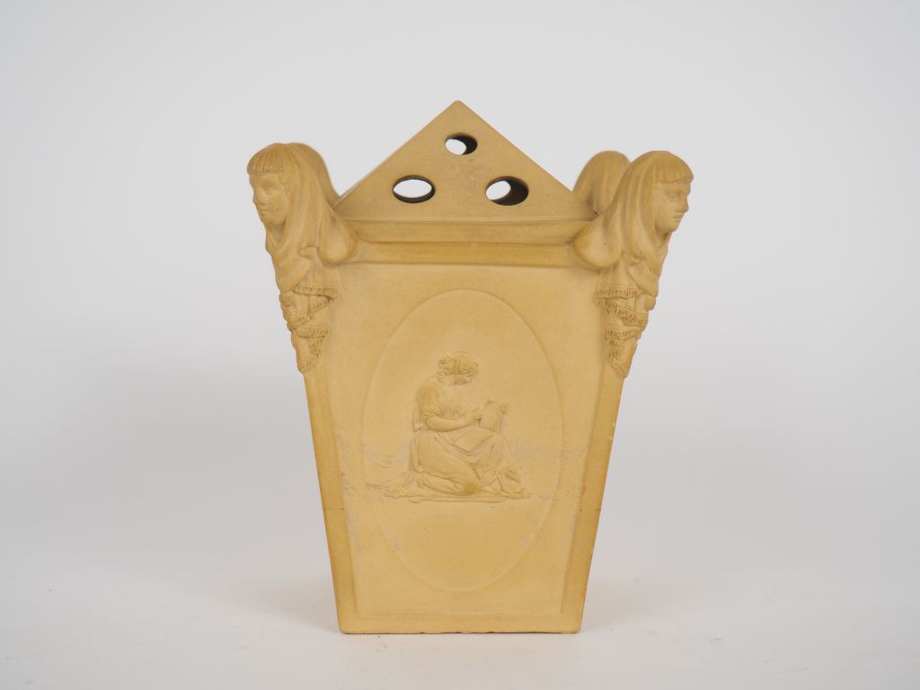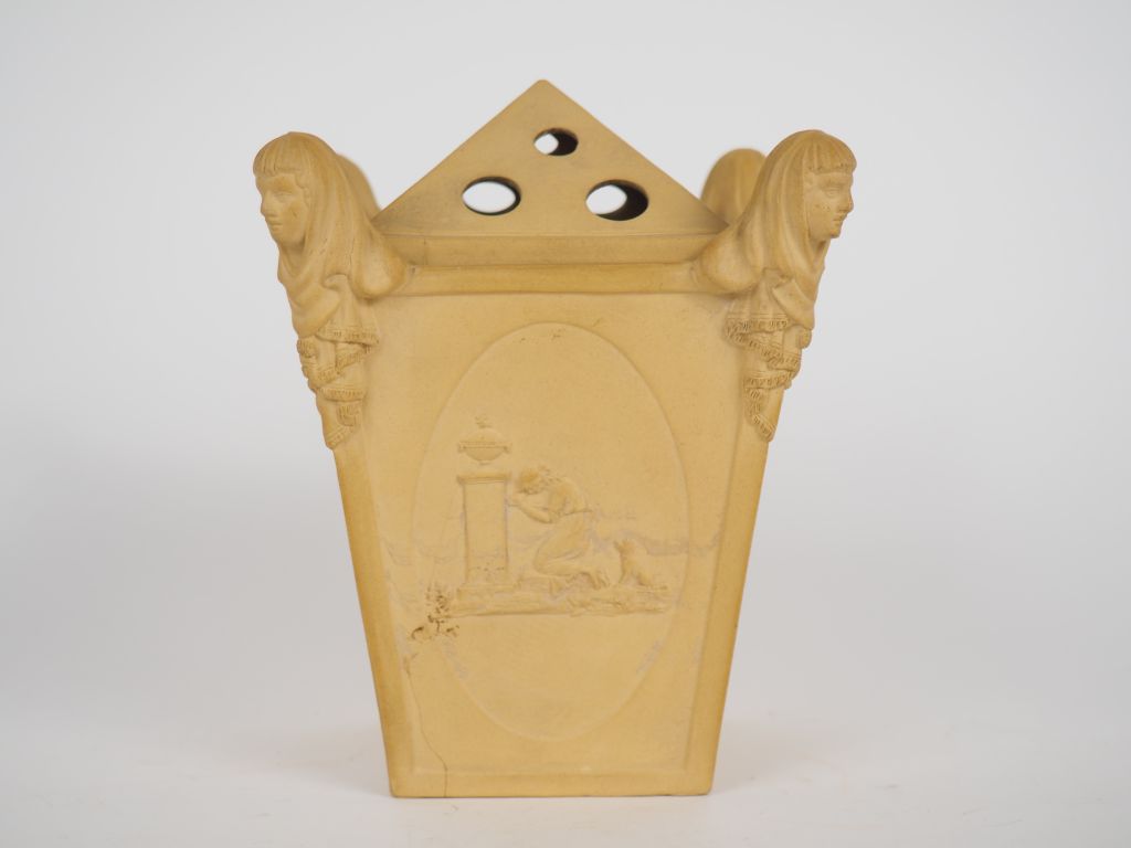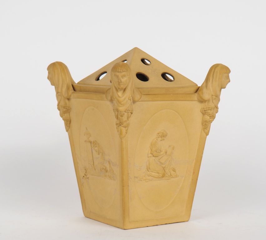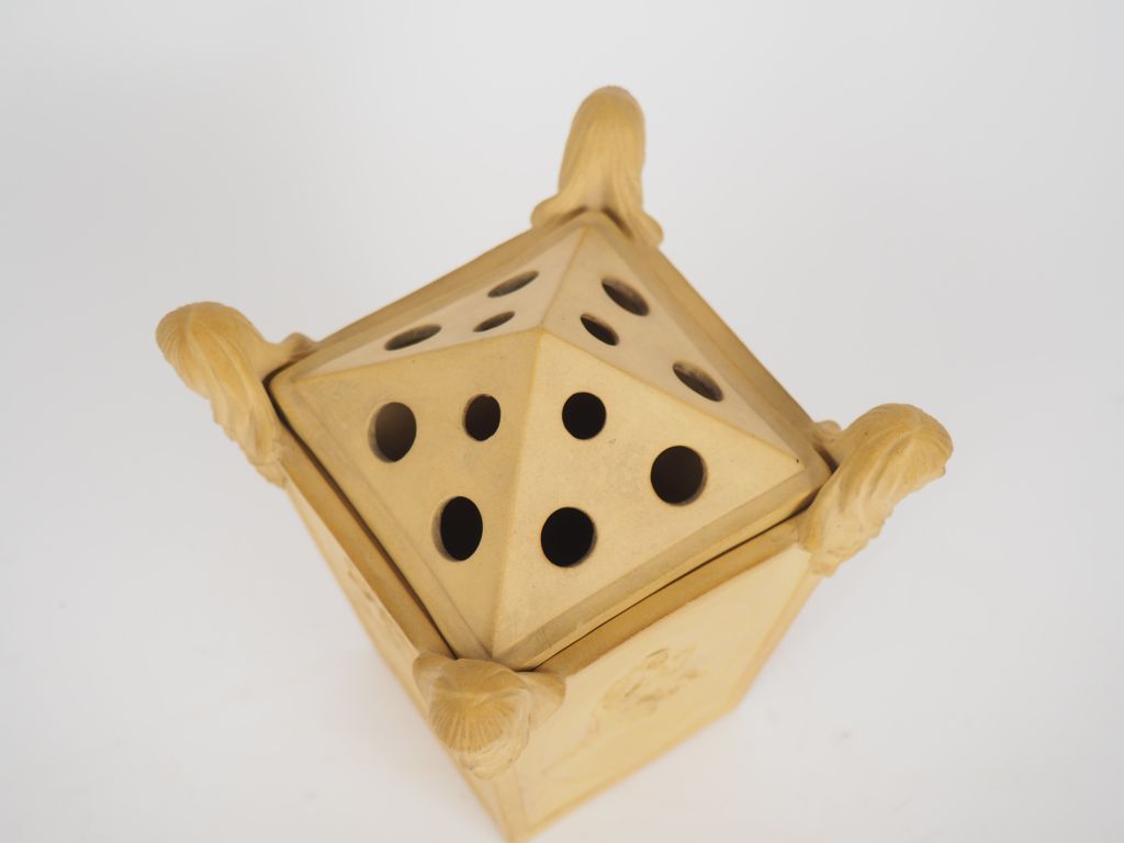 Brûle-parfum de style néo-classique en biscuit à décor de femmes de la mythologie. Dim.14,5 x 12,5 x 12 cm