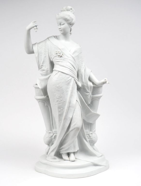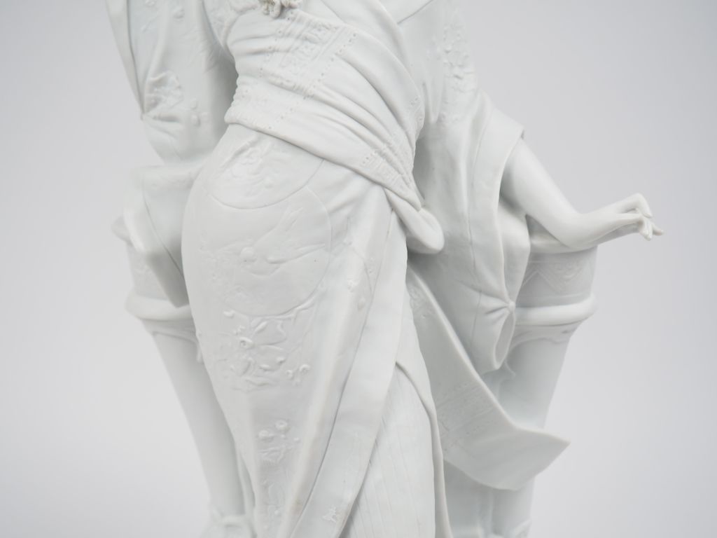 Ch. MASSÉ. "Elégante japonaise". Grand sujet en biscuit de Sèvres, Signé. H. : 61 cm.