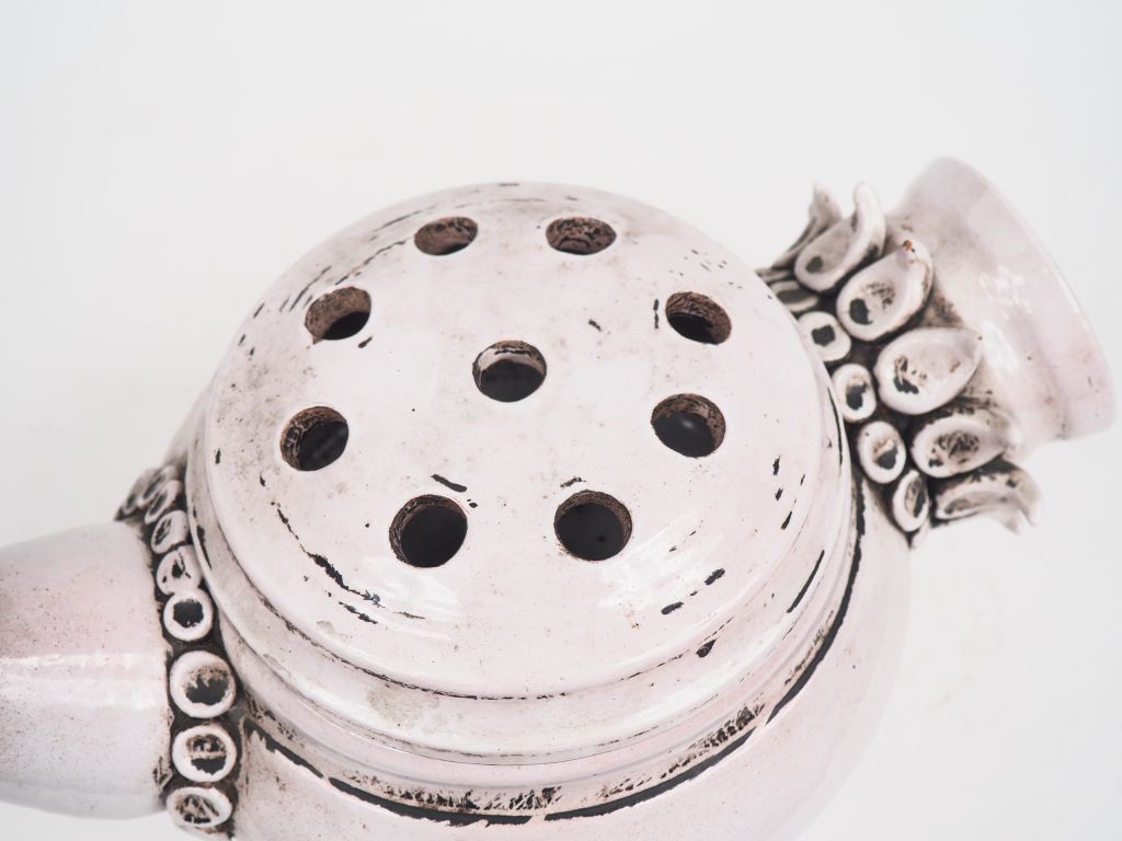 Ecole française XXème. Brûle-parfum figurant un coq. Dim. 28,5 x 45 x 23 cm. (un éclat).