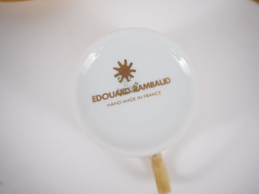Edouard RAMBAUD. 6 tasses et sous tasses et cuillères en porcelaine ...