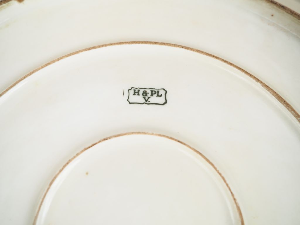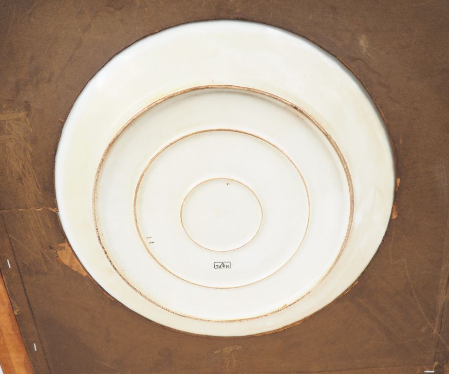 Grand plat circulaire en porcelaine polychrome de Limoges à décor de faune et de flore marine. Monogrammé AC ou AG Diam. 33 cm (encadré)