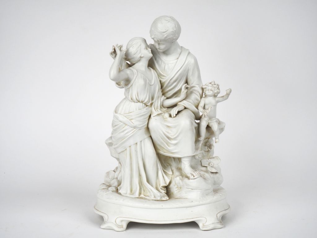 Groupe 1900 en biscuit "famille antique". H. 30,5 cm