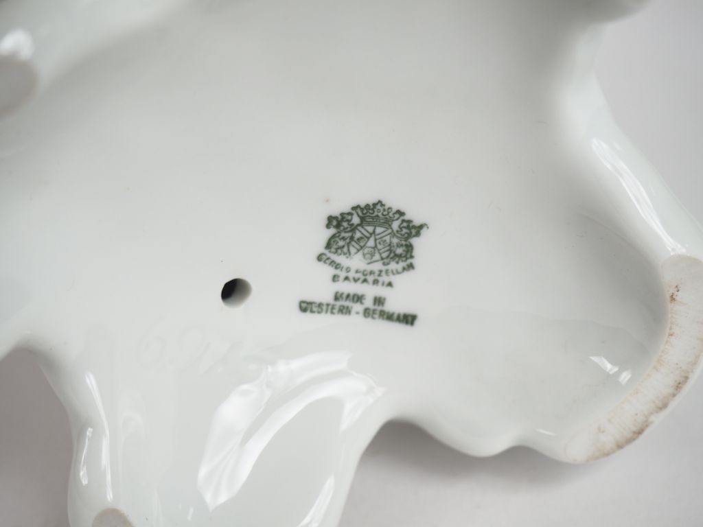 Groupe en porcelaine polychrome allemande "oiseaux branchés". Signé sous la base. H. 2',5 cm.