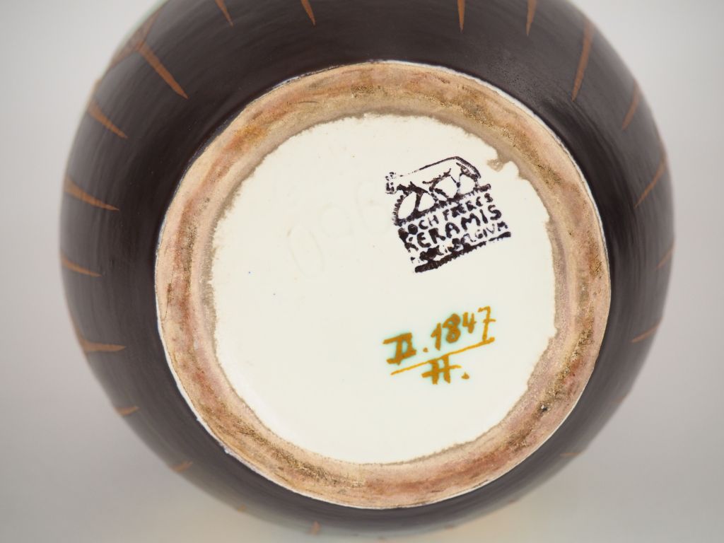 KERAMIS. Boch Frères Vase ovoide en céramique à décor de fleurs polychromes Signé H. 32 cm