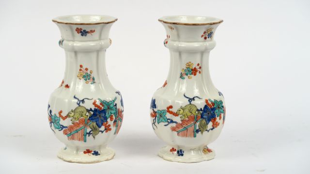 Lot de Paire de vases XVIIIème en porcelaine de Chantilly, décor kakiémon. H. au prix de 300 à 500 € en vente aux enchères par l'hôtel des ventes Primardeco