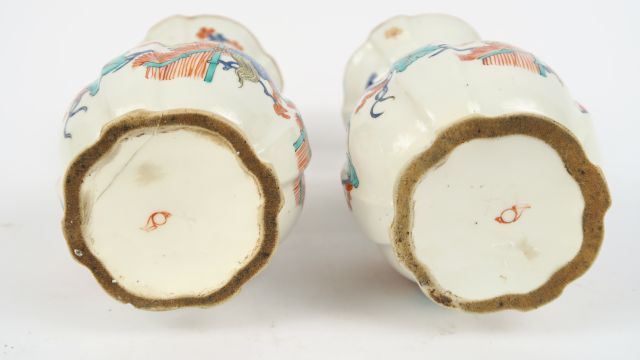 Paire de vases XVIIIème en porcelaine de Chantilly, décor kakiémon. H. : 16 cm