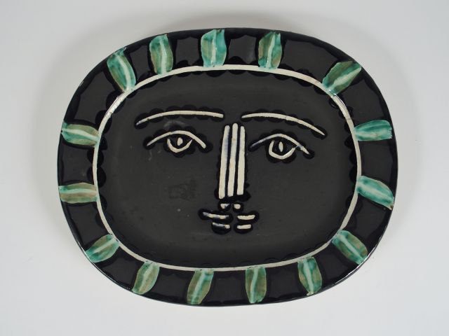 PICASSO. Plat ovale « Visage », fond noir. Madoura édition Picasso. Dim. : 31 x 38cm.