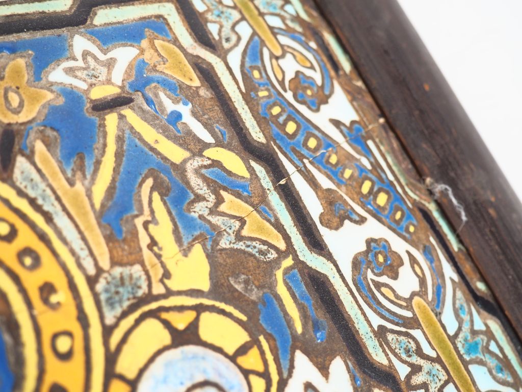 Plaque 1900 en faience polychrome "Vierge couronnée à l'enfant". Dim.32 x 25 cm (fel)