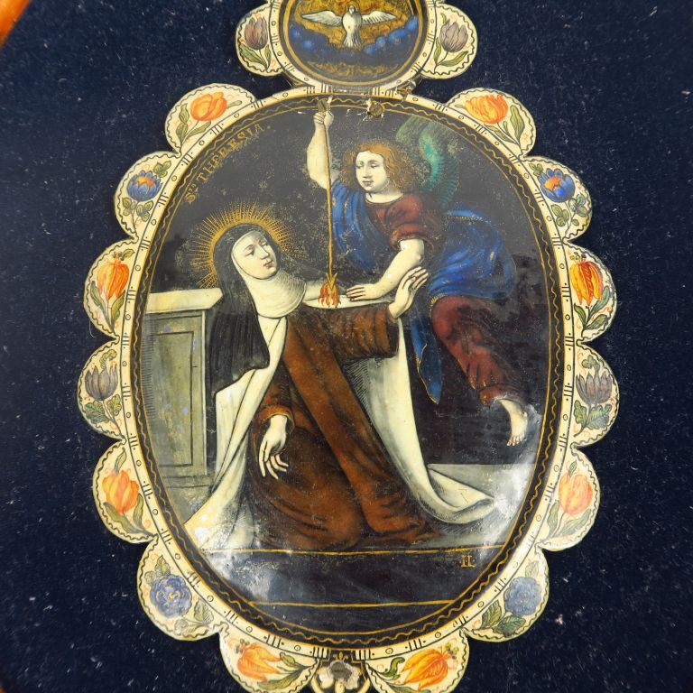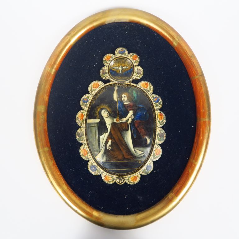 Plaque en émail de Limoges "Sainte Thérèse". Signée. Dim. 25 x 16 cm (restaurée)