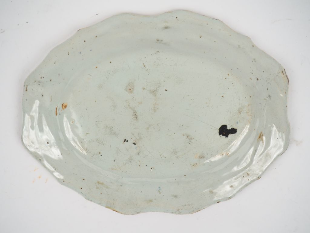 Plat ovale en faience à décor de fleurs polychromes. (égrenures) Dim. 28,5 x 21 cm