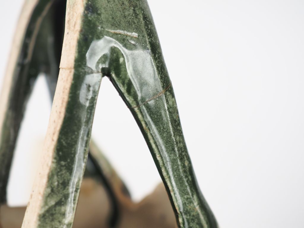 Porte bouquet mural fin XIXème en faience polychrome en forme de libéllule. Dim. 24,5 x 21 cm (restauration)