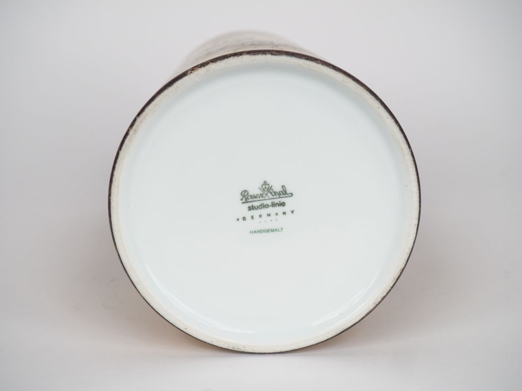 ROSENTHAL Studio Linie. Vase cylindrique en porcelaine à décor de fleurs dorées sur fond marbré. Signé. Dim. 25 x 12 cm.