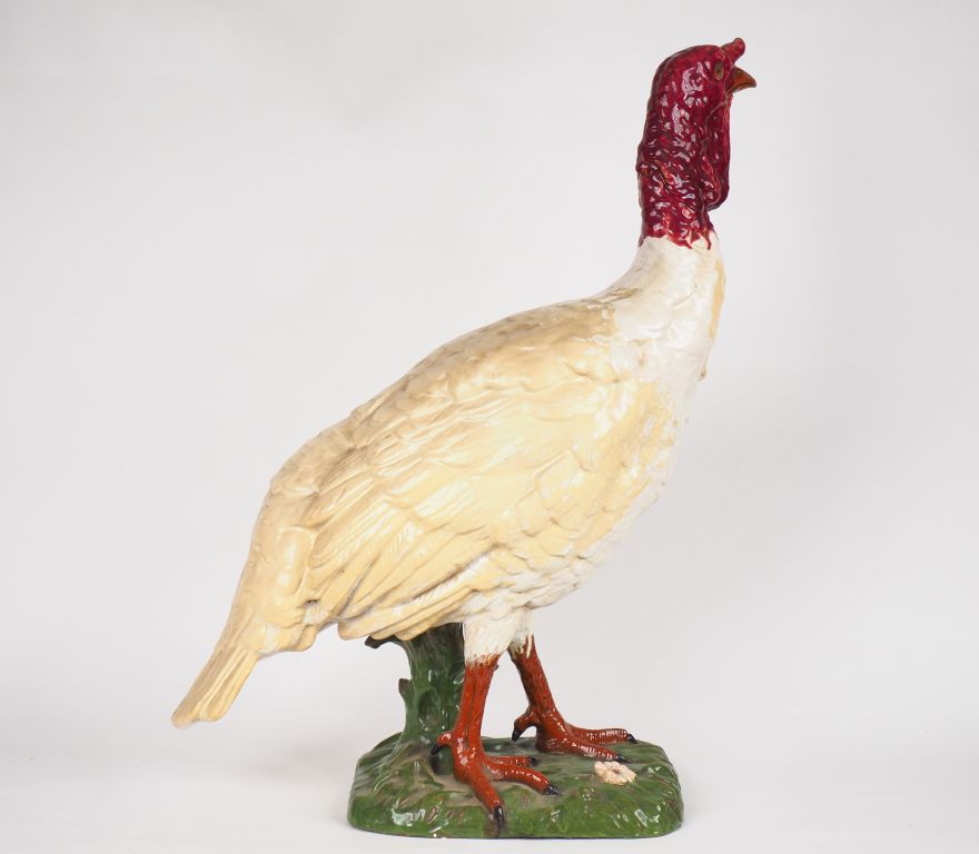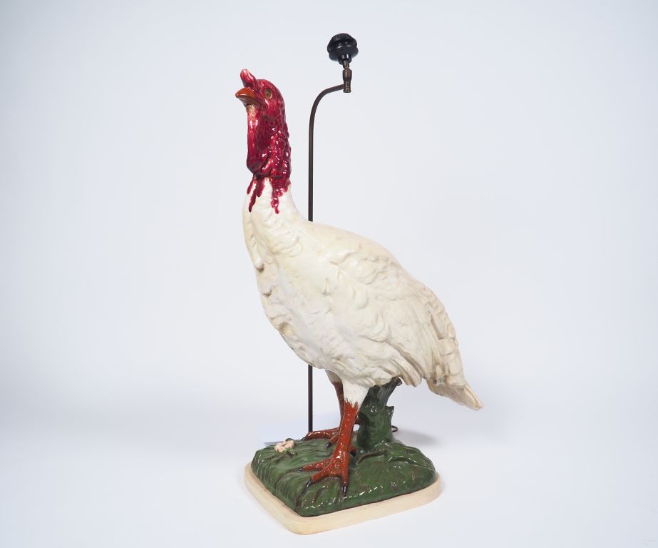 Lot de Sculpture en céramique polychrome figurant un dindon, montée en lampe. au prix de 200 à 300 € en vente aux enchères par l'hôtel des ventes Primardeco