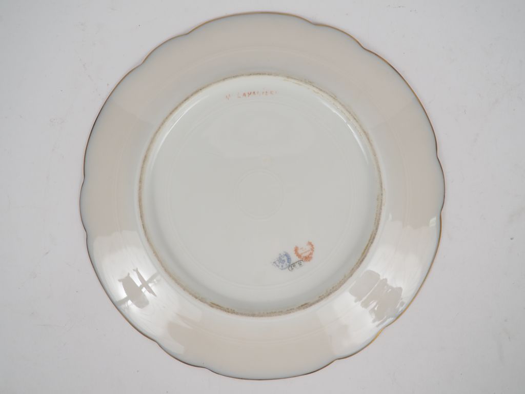 SEVRES. Assiette en porcelaine à décor polychrome de jeune fille. Signée E. Collot. marque de Sèvres. Diam. 24,5 cm.