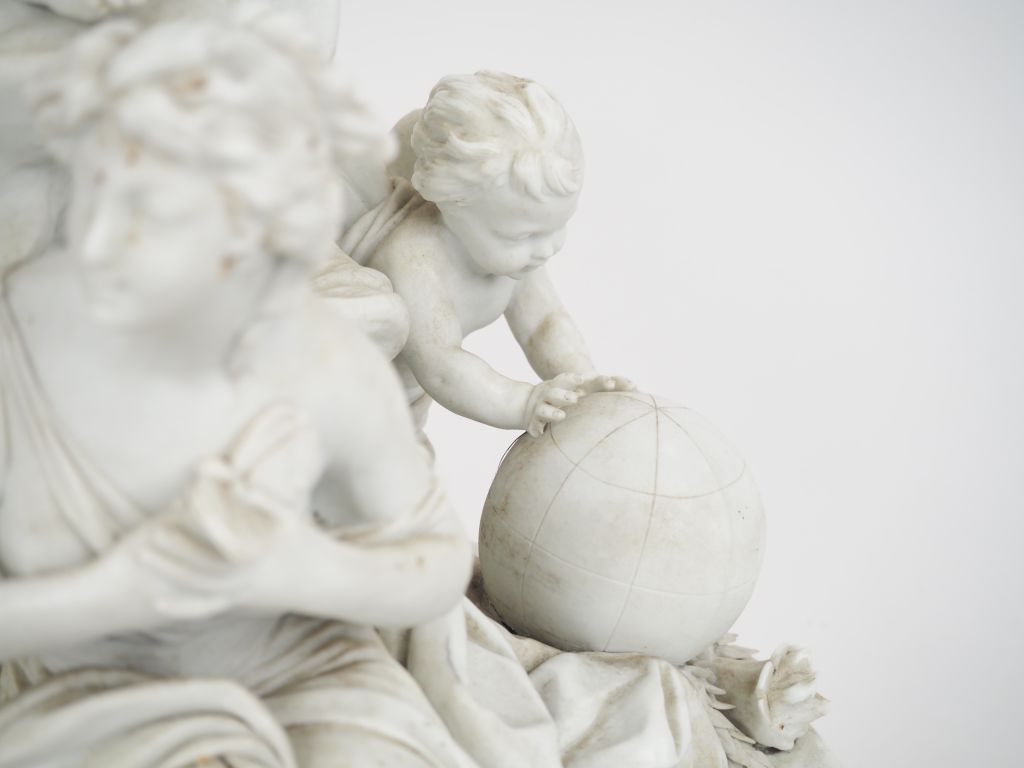 SEVRES (d'après). "Allégorie de l'amour" Groupe en biscuit Dim. 40 x 40 x 27 cm (petits accidents)