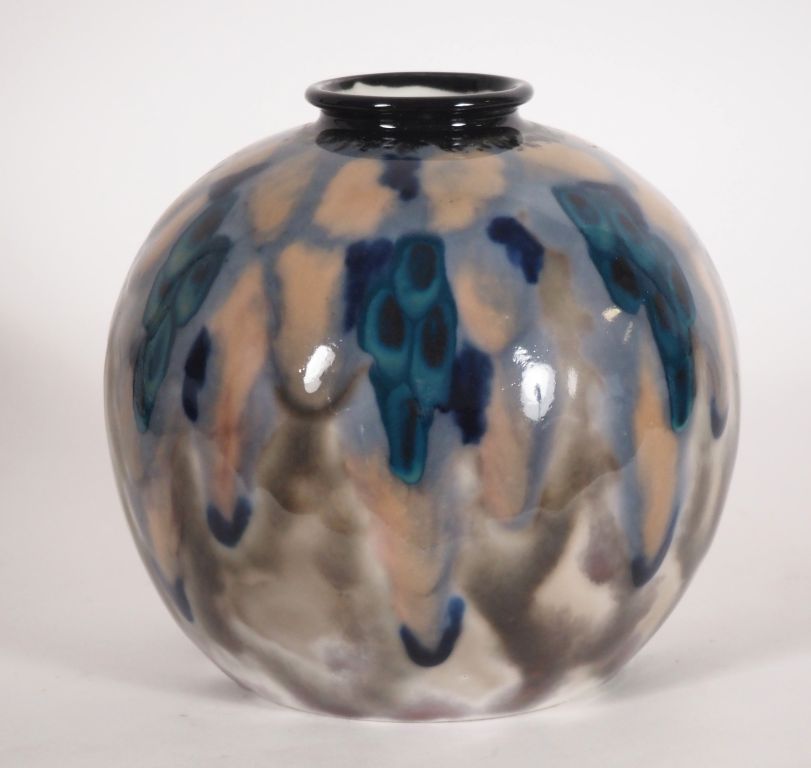 THARAUD. Vase boule en porcelaine à décor de motifs abstraits. Signé ...