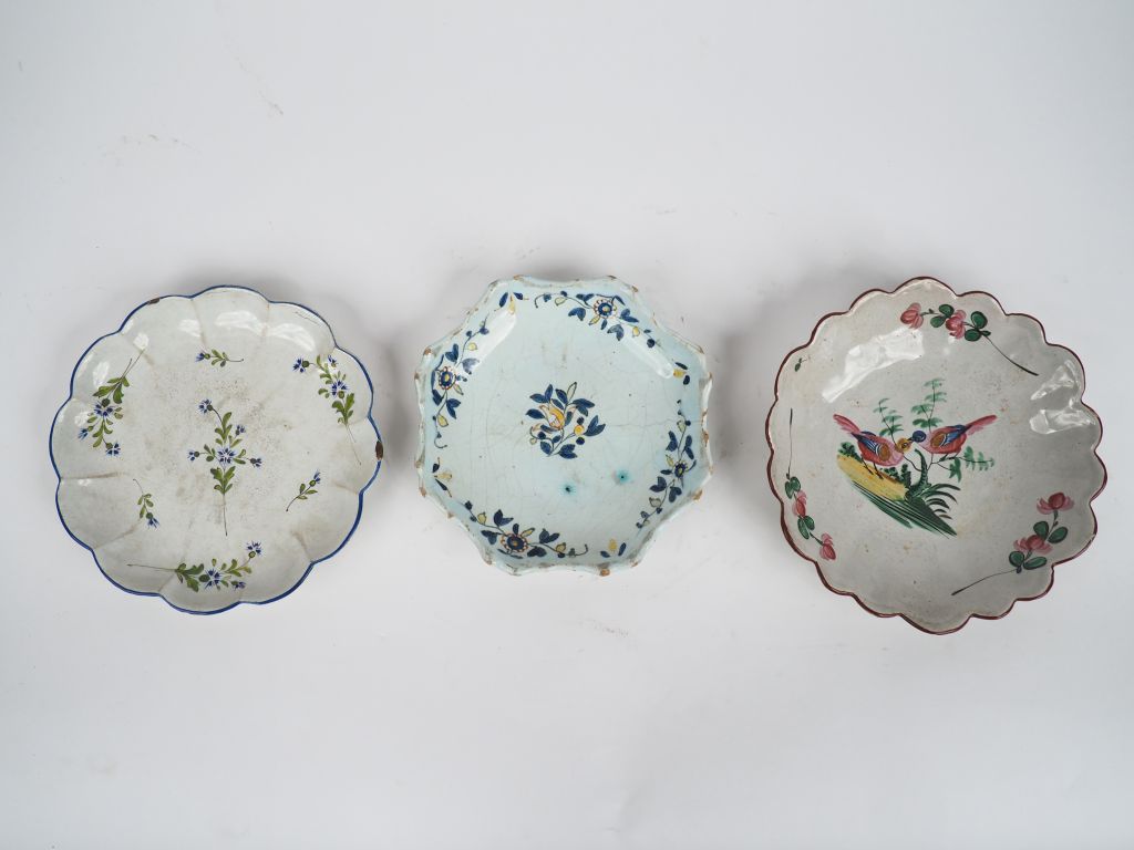 Lot de Trois différents ramequins en faïence XIXème à décor de fleurs polychr au prix de 20 à 30 € en vente aux enchères par l'hôtel des ventes Primardeco