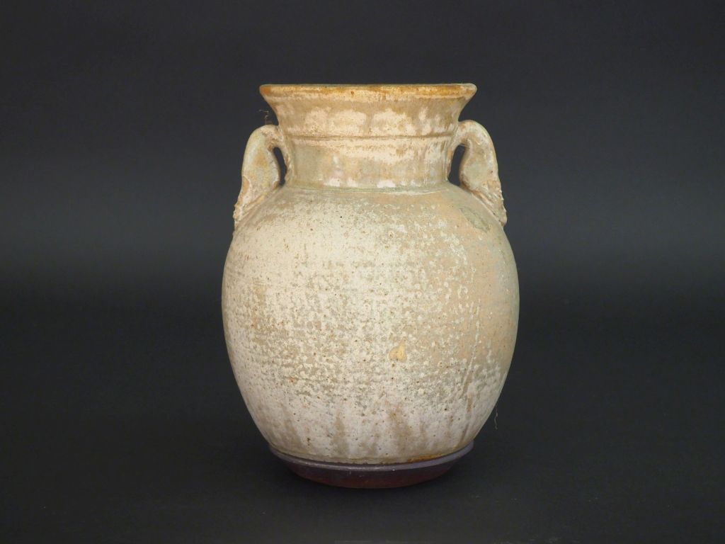 Vase en céramique contemporaine polychrome à l'imitation des poteries antiques. Signé de deux "L" entrelaçés. H. 23,5 cm