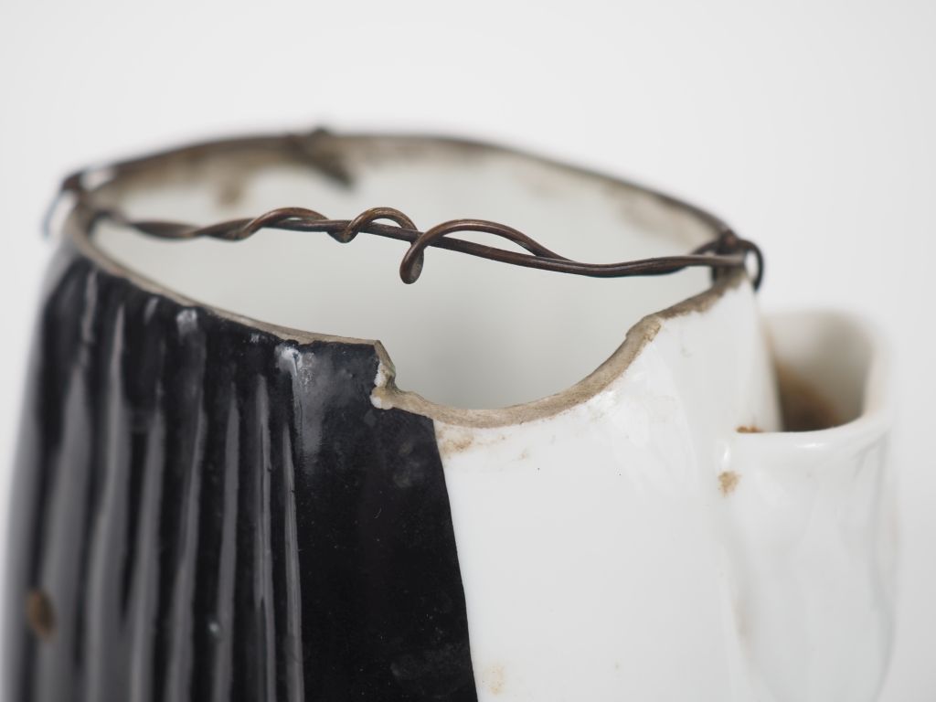 Veilleuse en porcelaine fin XIXème en forme de bonne sœur à la cornette. H. 32 cm (extrémité du manche de la cuillère cassée, fel, manque)