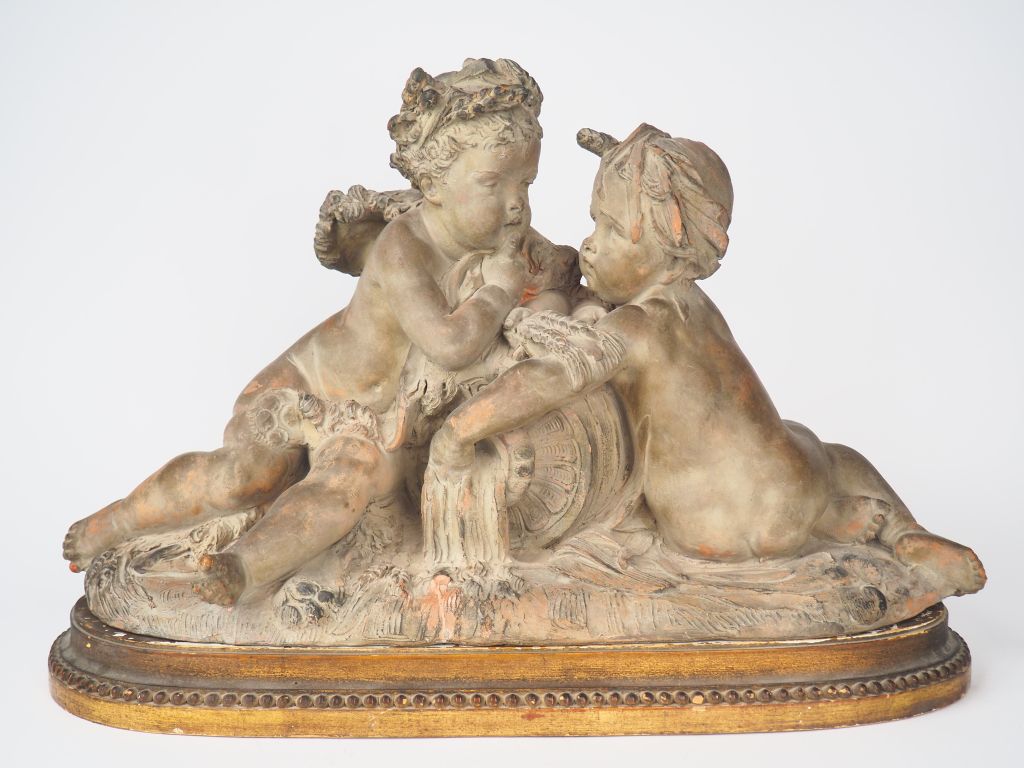 Lot de A CARRIER. "La source" Groupe en terre cuite à patine claire. Signé au prix de 700 à 1000 € en vente aux enchères par l'hôtel des ventes Primardeco