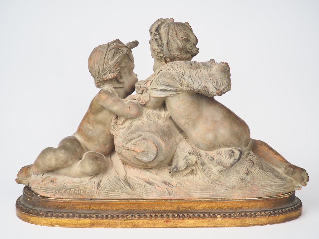 A CARRIER. "La source" Groupe en terre cuite à patine claire. Signé ...