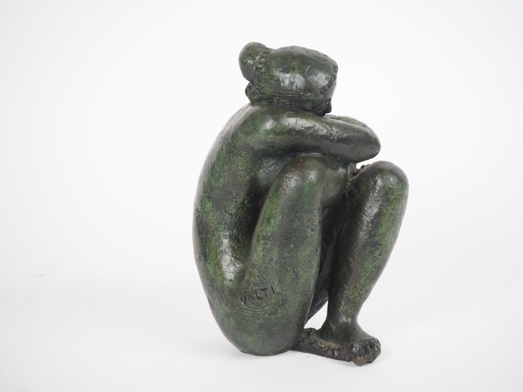 Antoniucci VOLTI (1915-1989) « Jeune femme accroupie ». Sculpture en bronze à patine verte Signée et numérotée 3/6, cachet du fondeur « Toronto Art foundry » H. 24 cm. Provenance : Collection particulière Madame DC (Montpellier) Experts : Frédérick et Pauline Chanoit - 01 47 70 22 33