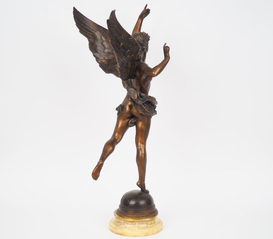 Lot de BAREAU. "Gloria" Grande sculpture en régule sur un socle en onyx. H. au prix de 350 à 500 € en vente aux enchères par l'hôtel des ventes Primardeco