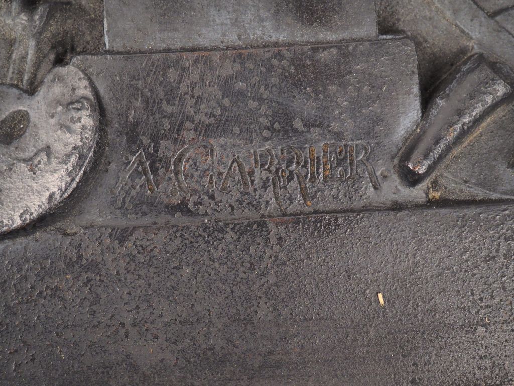 CARRIER. "Allégorie du Savoir de la jeunesse Grand bas relief en fonte signé en bas Dim. 70 x 87 cm