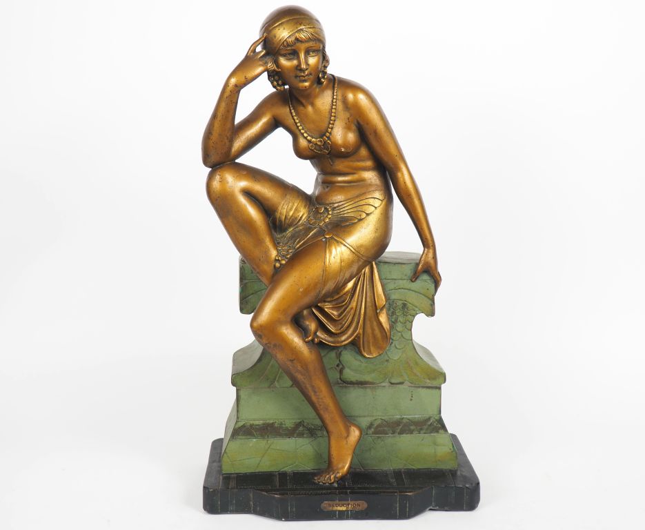Lot de CIPRIANI. "Séduction". Sculpture Art Déco en plâtre polychrome. H. au prix de 300 à 500 € en vente aux enchères par l'hôtel des ventes Primardeco