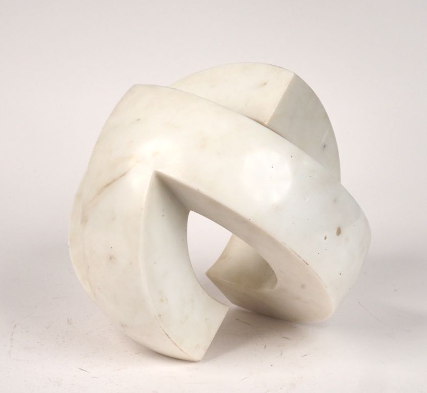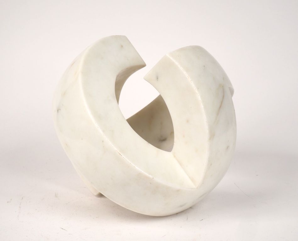 Claude MOMIRON. "Boule de Noebus" Sculpture en marbre blanc Signée. H....