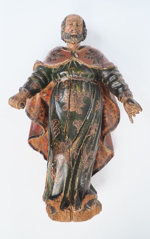 Lot de Ecole espagnole XVIIème. "Apôtre" Sculpture en bois polychrome H. 74 au prix de 500 à 700 € en vente aux enchères par l'hôtel des ventes Primardeco