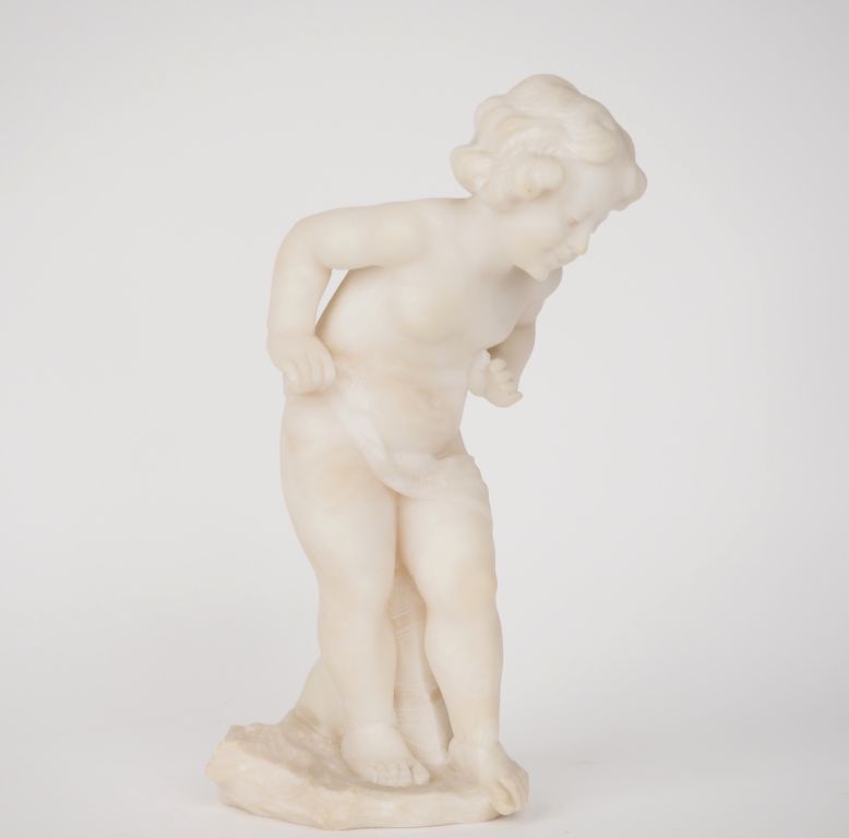Ecole française vers 1900 "fillette au bain" Sculpture en albâtre. H. 29 cm