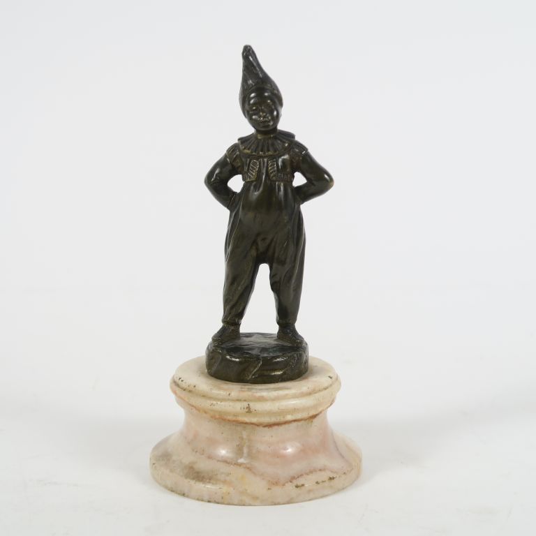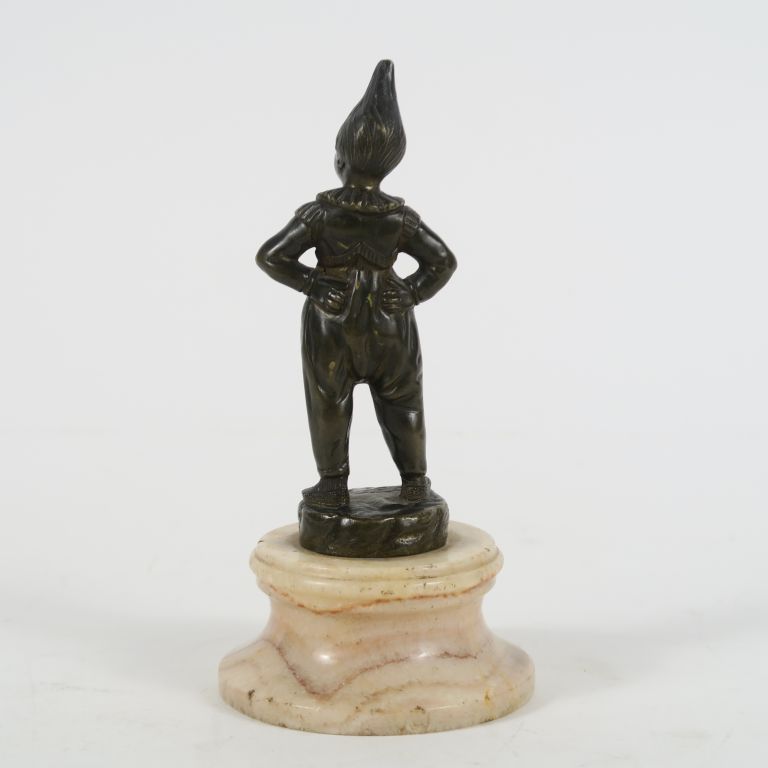 Ecole française XIXème. "le petit saltimbanque" Sujet en bronze à patine brune, socle en onyx H. du sujet : 12,5 cm H. totale : 16,5 cm