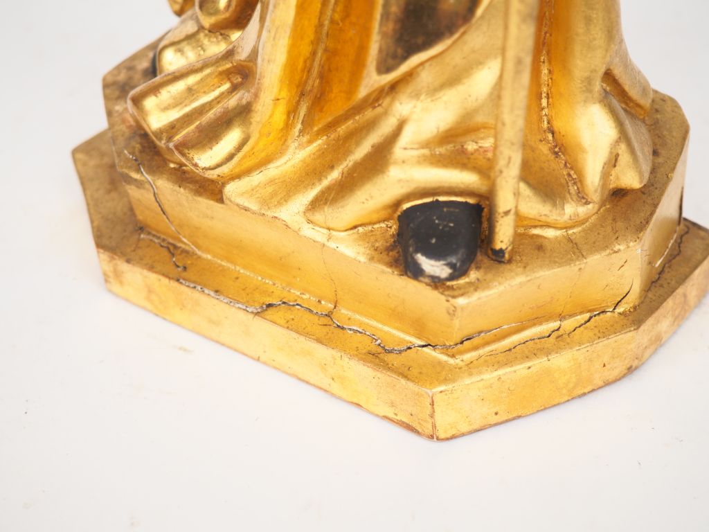 Ecole française XIXème. "Saint-Christophe". Sculpture en bois doré. H. 42,5 cm. (Redorée, petits accidents).