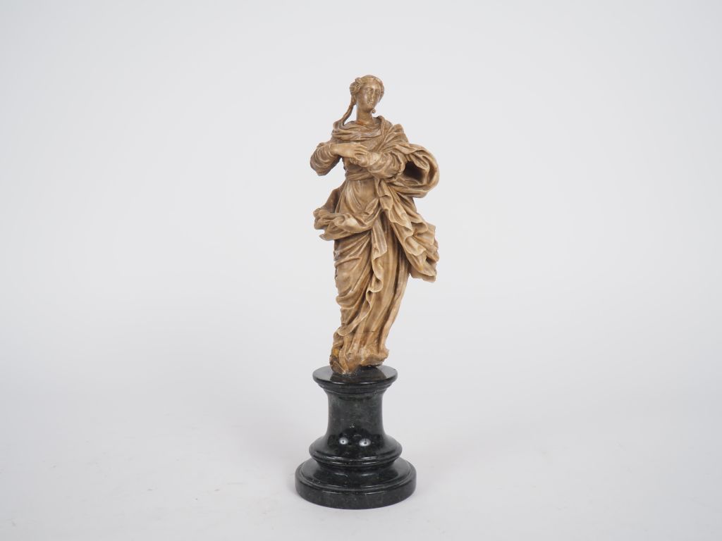 Ecole Francaise XVIIème. "Sainte femme". Sculpture en albatre. H. 25 cm. (petite restauration)