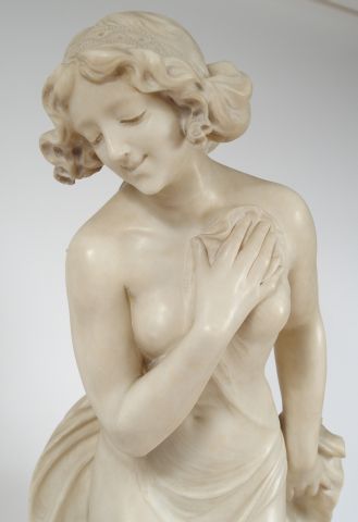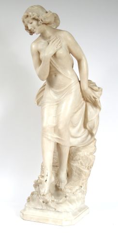 G. BASTIANI. Signée Prof. J. Bastiani. Grande sculpture en albâtre "Baigneuse". H. 96 cm