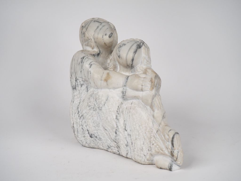 Lot de GHIRO. "Couple enlacé". Sculpture en marbre, signée. Dim. 30 x 30 x 1 au prix de 400 à 600 € en vente aux enchères par l'hôtel des ventes Primardeco