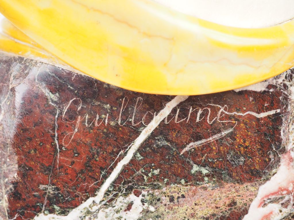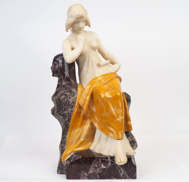 GUILLAUME. "Rebecca" Sculpture en marbre polychrome et albâtre. Signée. Dim. 64 x 32 x 30 cm. (accidents et restaurations au bras gauche).