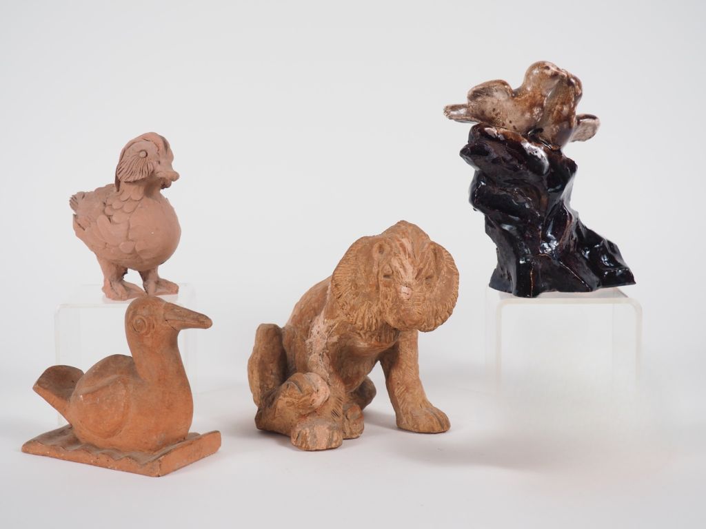 Henri Paul REY. 4 différents sujets animaliers en terre cuite patinée ou émaillée.
