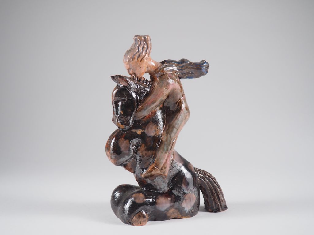 Lot de Henri Paul REY. "Amazone" Sculpture en terre cuite vernissée polychro au prix de 100 à 150 € en vente aux enchères par l'hôtel des ventes Primardeco