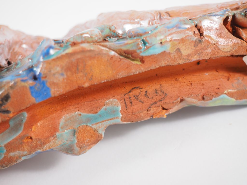 Henri Paul REY. "femme nue" Sculpture en terre cuite vernissée polychrome Signée H. 7,5 x 20 cm